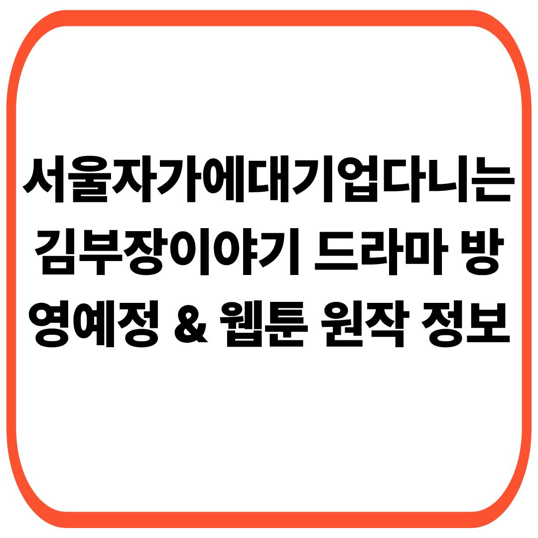 서울자가에대기업다니는김부장이야기 드라마 방영예정 & 웹툰 원작 정보