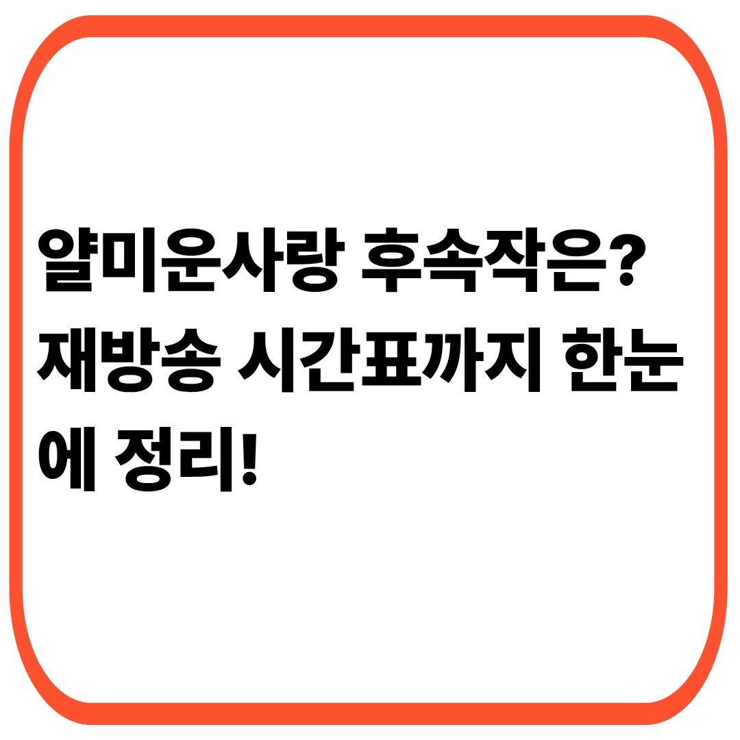 “얄미운사랑 후속 재방송” 키워드를 중심으로 정보를 체크해두시면 시청 흐름을 놓 치지 않을 수 있습니다.