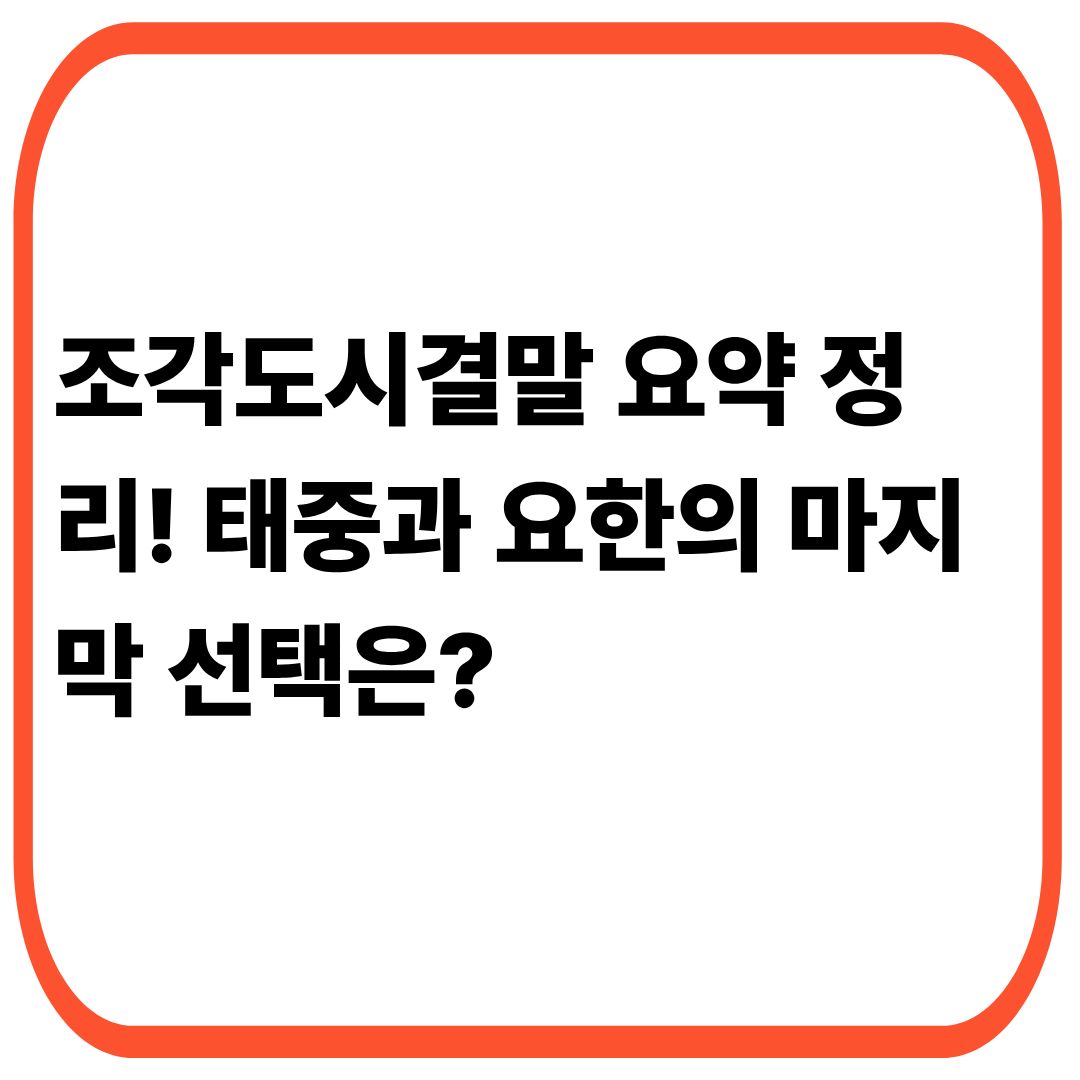 조각도시결말 요약 정리! 태중과 요한의 마지막 선택은?