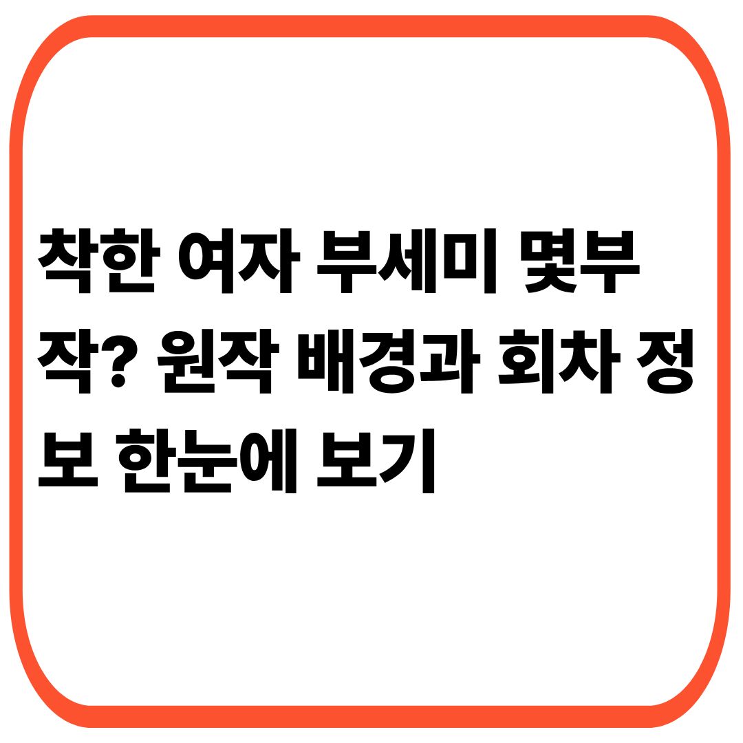 이 글에서는 드라마 착한 여자 부세미의 원작 여부, 총 몇부작으로 구성됐는지, 그리고 회차별 기대 포인트까지 총정리해서 알려드립니다.
