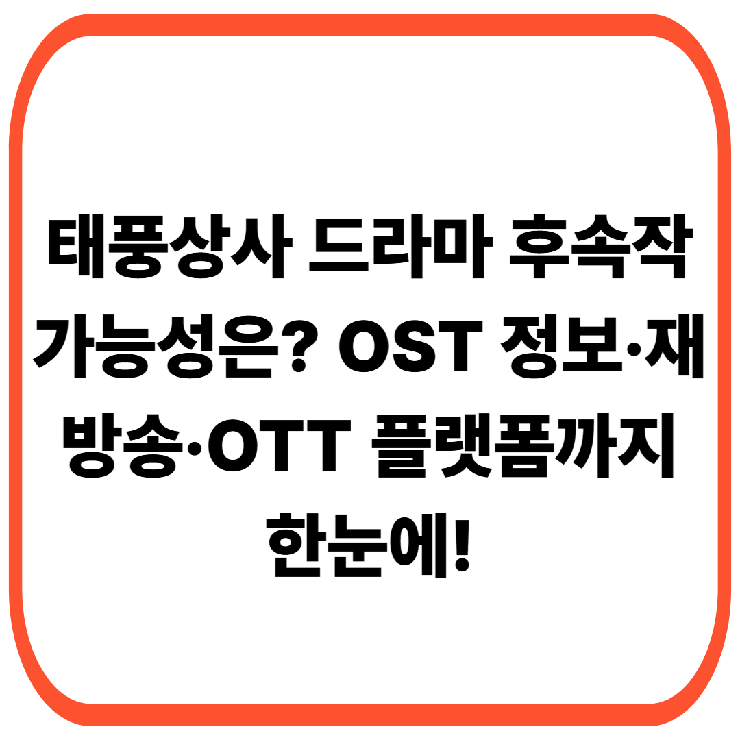 많은 시청자들이 “후속작은 나올까? OST는 누구 노래야? 본방 못 봤는데 재방은 언제? OTT에서 볼 수 있을까?” 등 다양한 질문을 던지고 있습니다. 이 글에서는 ‘태풍상사’ 드라마 후속작 가능성부터 OST, 재방송 일정, OTT 정보까지 한 번에 정리해드립니다.