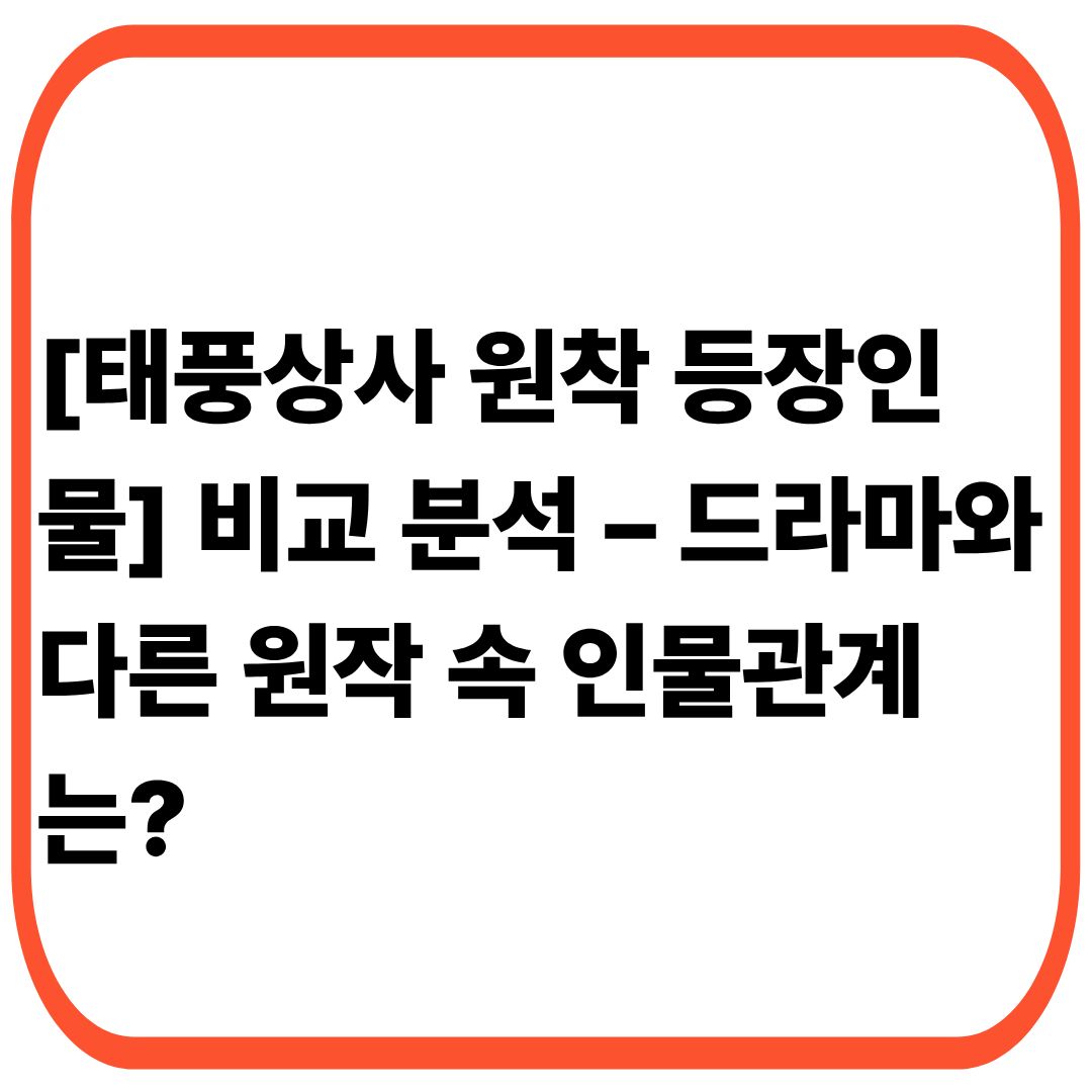 이번 글에서는 ‘태풍상사’의 원작 등장인물과 드라마 속 인물의 차이점, 그리고 그에 따른 인물관계의 변화를 비교해 정리합니다.