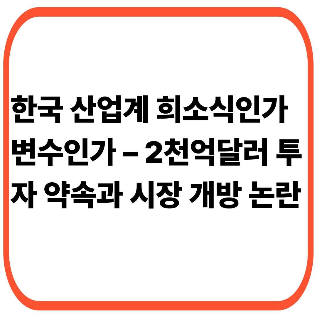 한국 산업계 희소식인가 변수인가 – 2천억달러 투자 약속과 시장 개방 논란